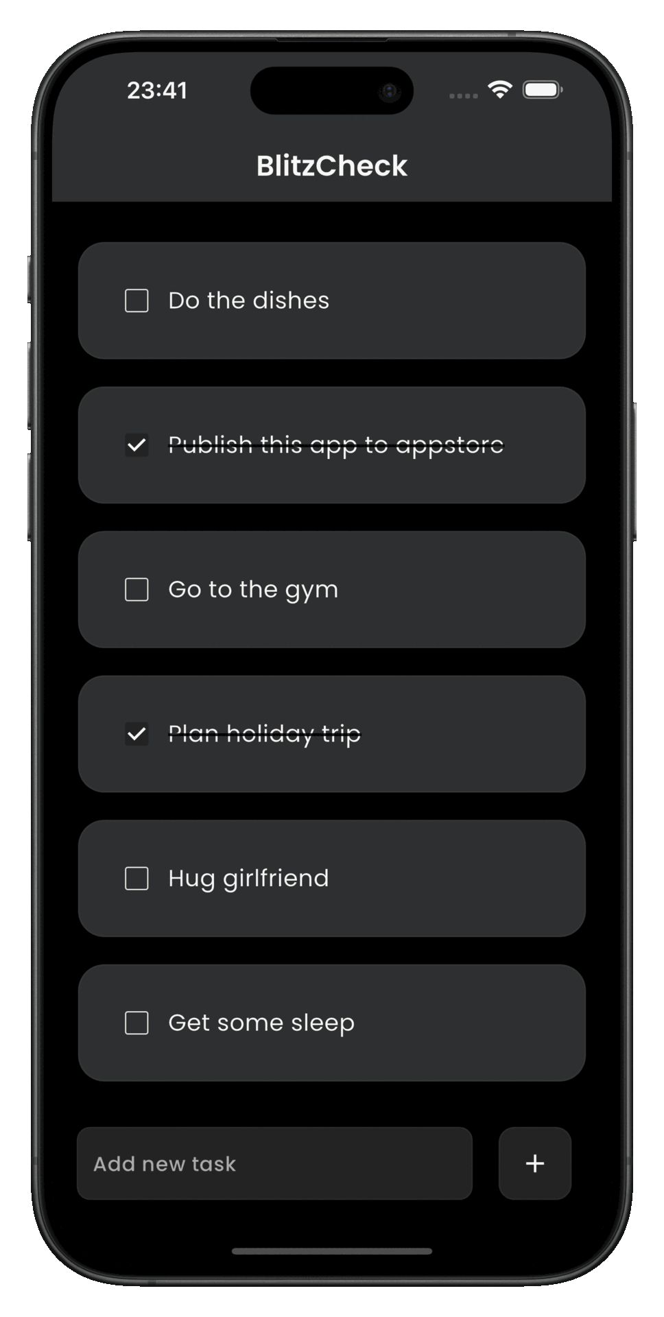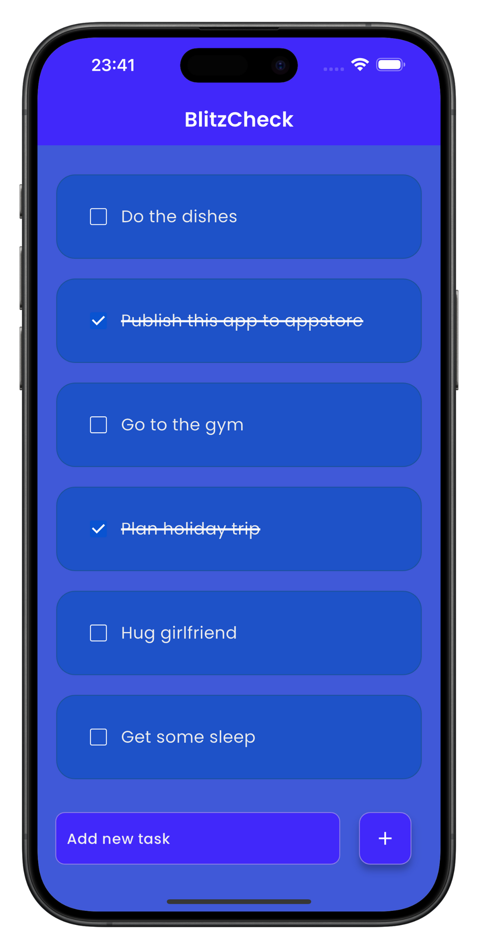 BlitzCheck is designed to be your go-to tool for managing tasks quickly and efficiently. With a clean, minimalist interface, our app eliminates distractions and lets you focus on what’s important. Whether you're managing work tasks, planning school assignments, or organizing personal errands, We help you optimize your day with ease.