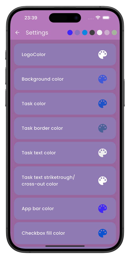 We let you personalize your task list with stunning, predefined color profiles or fully customizable options. Choose from vibrant, ready-made themes—like our most popular MintGreen—or create your own unique profiles to match your style and mood.